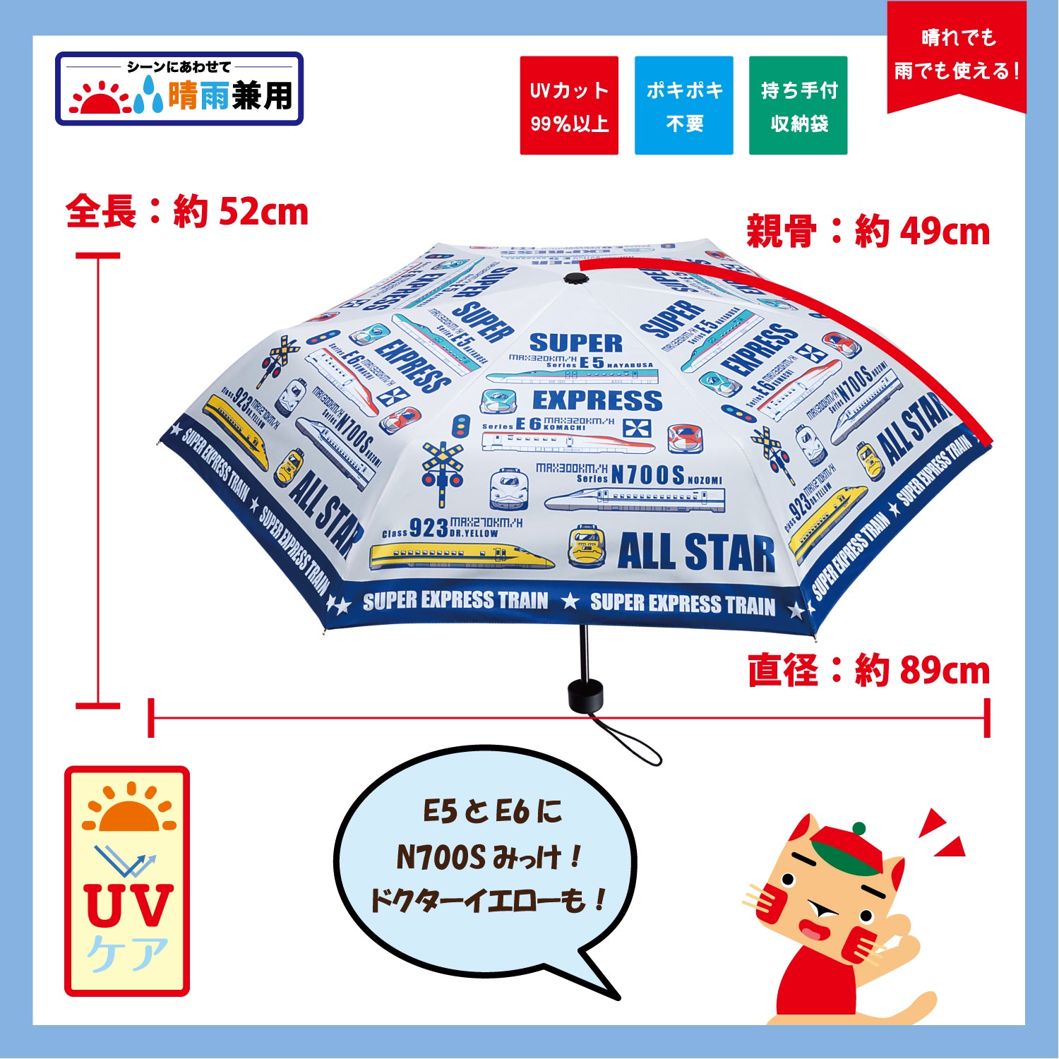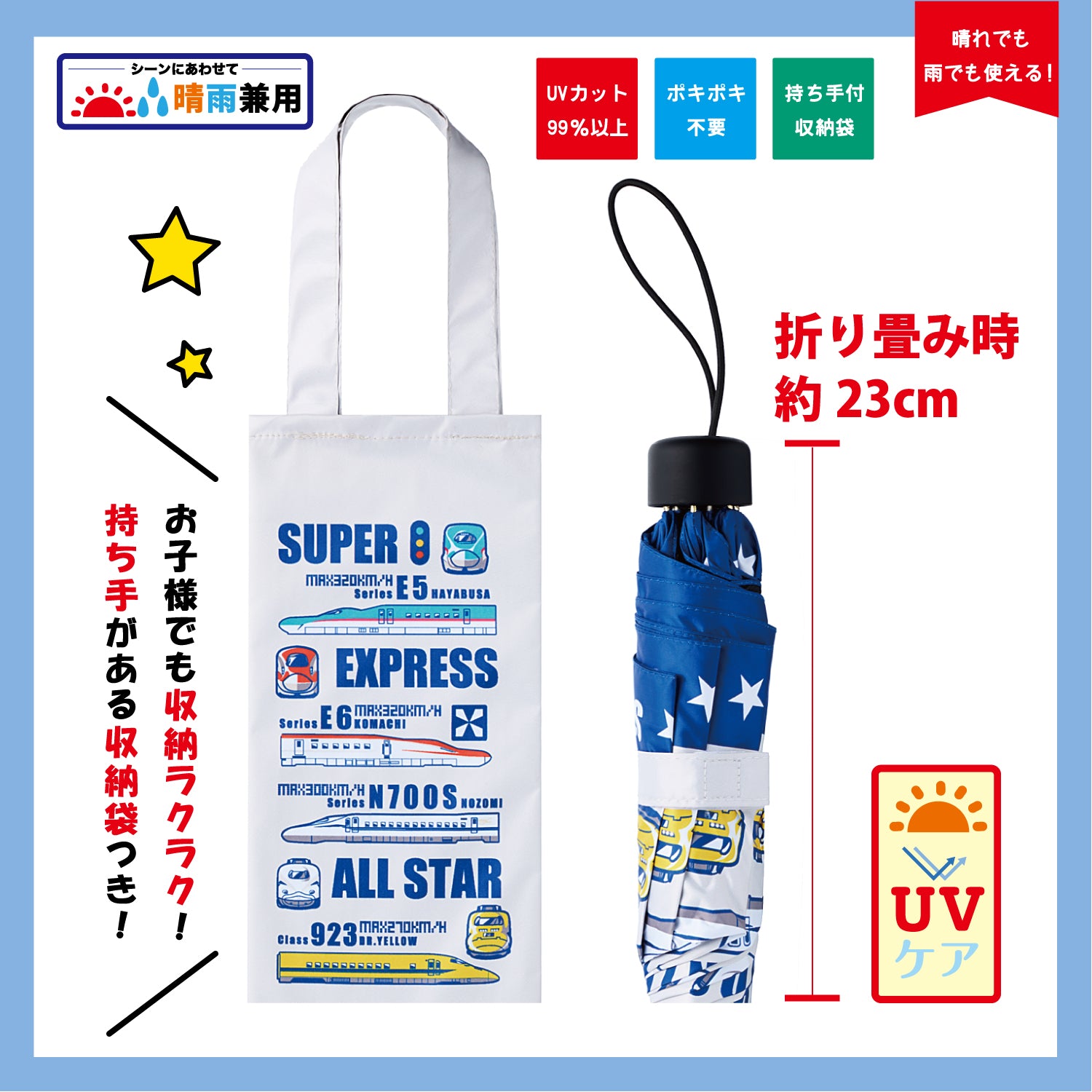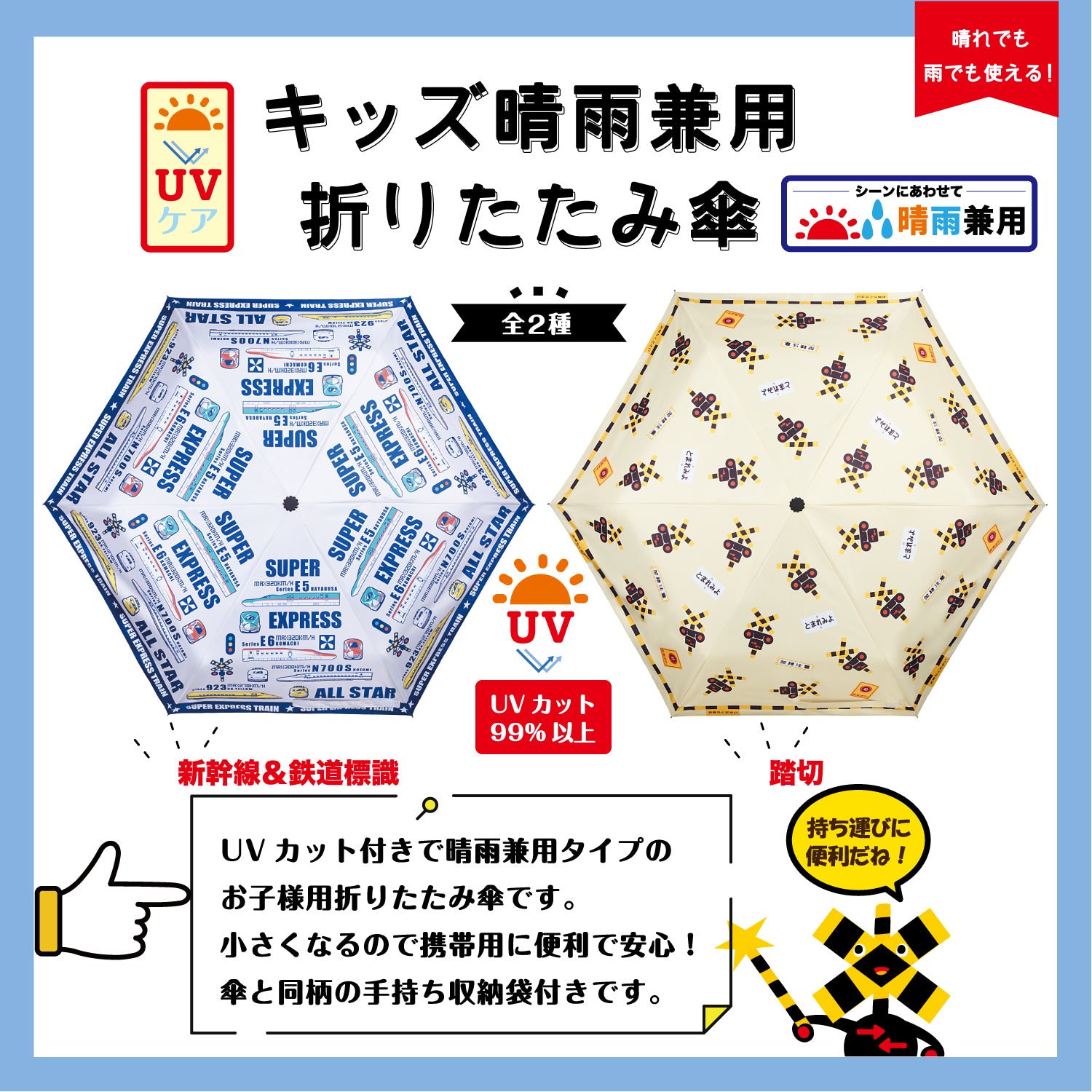 | 商品名 | キッズ晴雨兼用折りたたみ傘 新幹線&鉄道標識 |